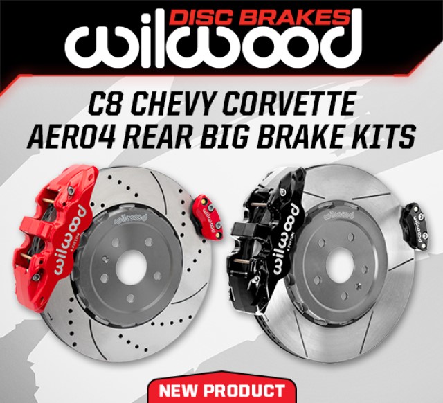 Wilwood now offers a rear big brake kit for the new C8 Chevy Corvette, and it includes an electric parking brake (EPB) caliper with wiring harness for seamless integration to onboard systems. The new AERO4 rear kit with Lug-Drive dynamic mount floating rotor complements the recently released Wilwood large front SX6R Lug-Drive C8 kits, both providing improved brake torque and increased thermal capacity.